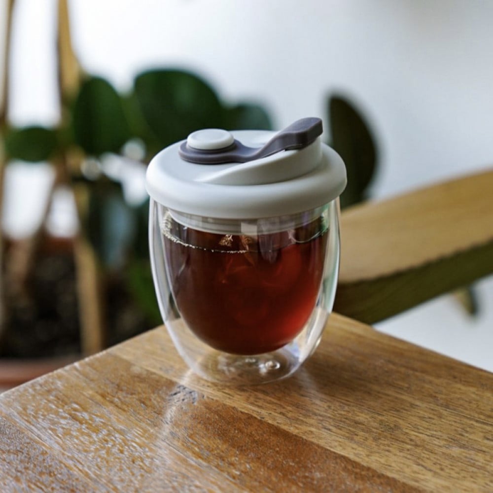 كوب زجاج دبل من LINE مانع للتسرب 250 مل رمادي